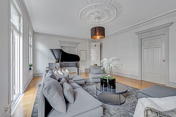 Leiligheten har god takhøyde, store rom og en attraktiv beliggenhet. Den er oppgradert, men det er også tatt vare på gamle unike detaljer. Her har du nærhet til alle sentrums fasiliteter.