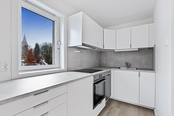 2-roms leilighet beliggende i et sentralt og hyggelig område, med store grøntarealer. Leiligheten har en smart planløsning med stue med åpen kjøkkenløsning, soverom og bad. Tilgang til felles takterrasse. Et populært område med nærhet til både byen og marka.