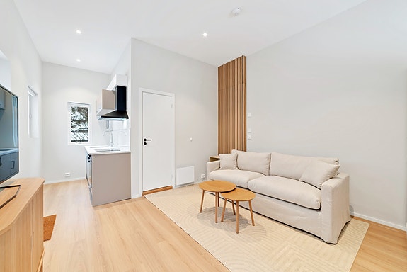 Leiligheten er nylig renovert fra topp til tå, og fremstår lys, moderne og gjennomført. Her får du:
