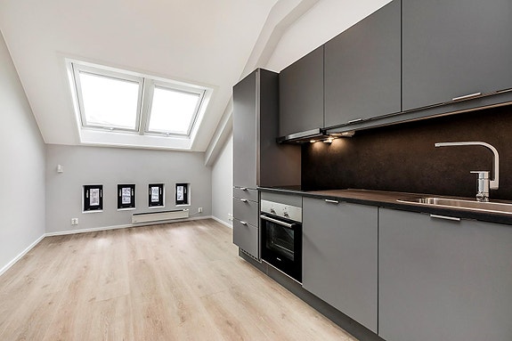 Umøblert. Kjøkkenhvitevarer medfølger.