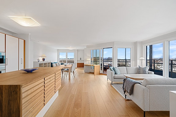 13 etg: Entre, wc, bad, vaskerom, 2 soverom, stue og kjøkken i åpen løsning.