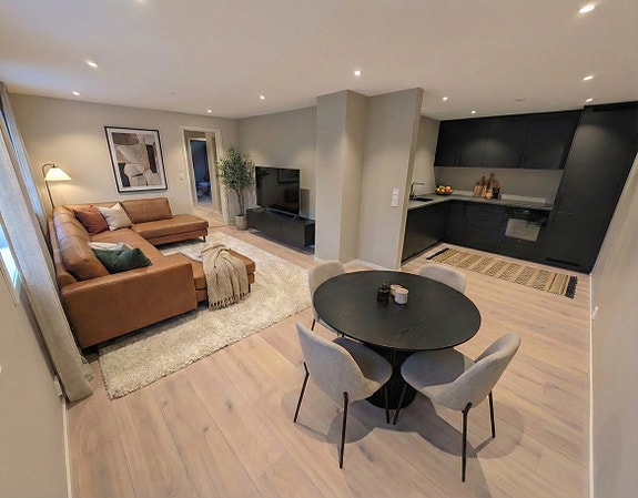 Enkelte overflater og detaljer ferdigstilles fortløpende, og mindre avvik fra bilder kan forekomme ved overtakelse. Boligen vil fremstå helhetlig, ryddig og klar for innflytting.