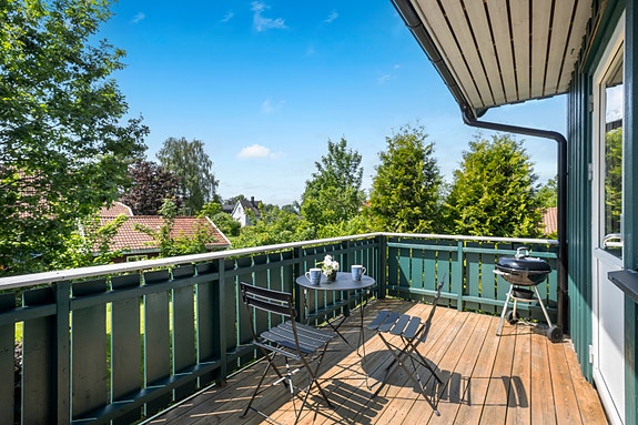 Leiligheten har stor balkong med plass til utemøbler.