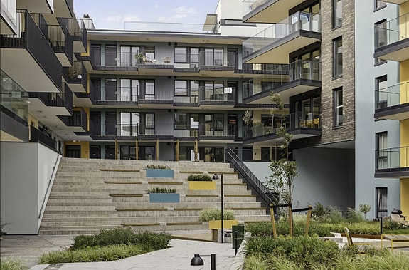Her får du din egen balkong i svalgangen rett utenfor døren med utsikt mot atrium og sjøluft. Oppe i femte er det også bare du og naboene som ferdes.