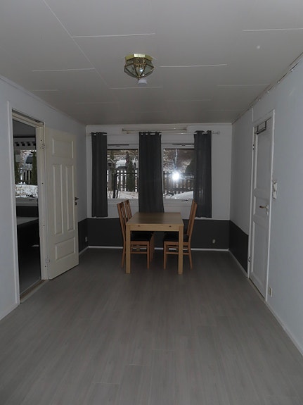 Stue med plass til både sofa og spisebord