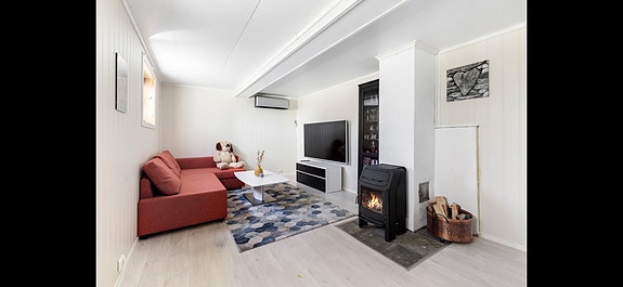 sofa, stuebord, hvitevarer og garderobeskap på soverom og bod er inkludert i leien.