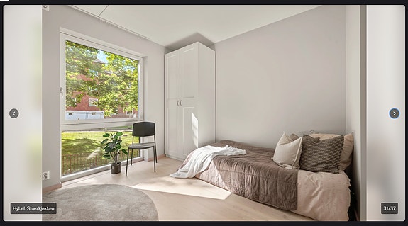Lys og luftig hybel med store vinduer. Det er også tilgang til to store felles takterrasser med fin utsikt.