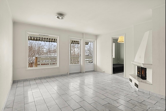 Stuen er romslig og har peis som gir ekstra komfort i vinterhalvåret. Herfra er det direkte utgang til vestvendt terrasse på ca. 12 m². Terrassen fungerer som en naturlig forlengelse av stuen store deler av året og gir en opplevd bruksflate på over 80 m² samlet.