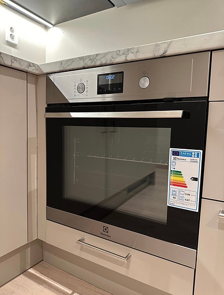 Den åpne løsningen mellom kjøkken og stue gir en luftig og hyggelig atmosfære. Leiligheten passer perfekt for én person eller et par.