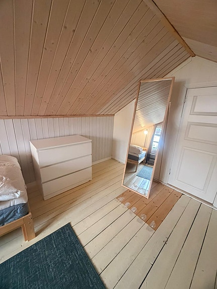 Rom 2. 5550,- Rom i andre etasje i huset, 1 vindu. seng, nattbord, lampe, kommode og speil