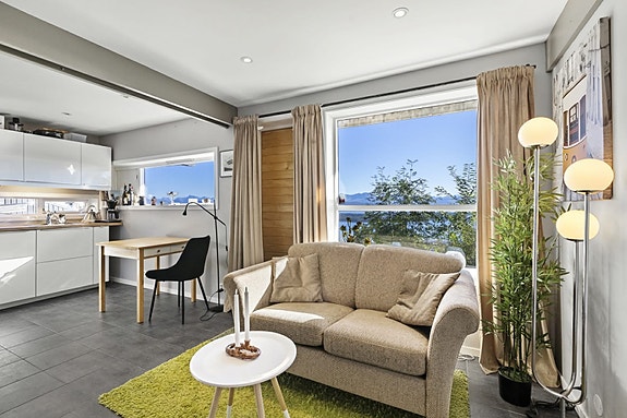 Leilighet ledig fra 1. juni. Rolig område og fantastisk utsikt. Egen inngang. Delvis møblert om ønskelig. Se bort fra møbler på bilde! Ta kontakt for visning.
