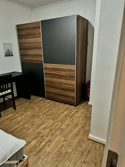 I rommet befinner det seg ett stort skap og en liten pult som tilhører rommet. Det står også en seng der som kan kjøpes, ellers blir det bare flyttet ned til boden i kjelleren.