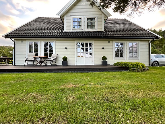 Ligger i landlige omgivelser. Stue, kjøkken, 4 soverom, 2 bad, gang, vaskerom, bod, loftstue. Garasje med elbillader.