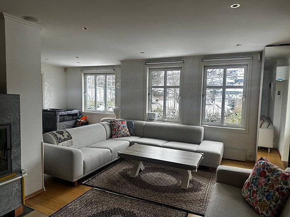 Hei, vi har en leilighet på 164 kvadrat til leie i en moderne villa i Bærum. Den er meget lys og på bakkeplan. Den har gulvvarme i alle rom, og er møblert. Den har vaskemaskin samt kjøleskap. Det er parkeringsplass for 4 5 biler, og det er mulig å benytte hagen.