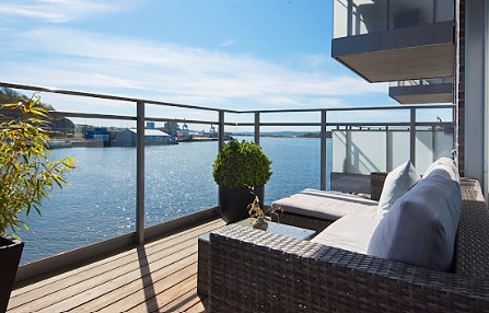 Lys og eksklusiv 3-roms med balkong og sjøutsikt på Sørenga
