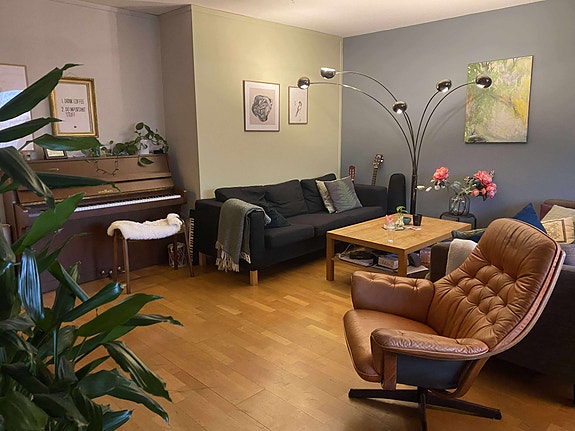 Vi har nå ledig rom hos oss! Beliggenheten er i et rolig og behagelig område, samtidig som du raskt kommer deg til både marka og sentrum, med gode trikk og buss-forbindelser! Vi kan lokke med en hyggelig hage hvor vi dyrker litt blomster og grønnsaker på sommeren, griller og nyter Oslo på sitt beste. Vi har også en koselig og stor stue og kjøkken med vindu ut mot hagen på vinter-halvåret.
