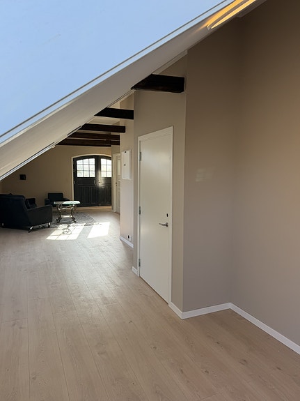 Leilighet nr. 2 ligger i byggets 3 etasje og er en loftsleilighet, den inneholder 3 soverom, det ene er master soverom, større enn de 2 andre og har god takhøyde og masse plass til dobbeltseng. Leiligheten er helt nyoppusset i 2025/26 og har aldri være bebodd. Ca. 70kvm, ledig omgående.