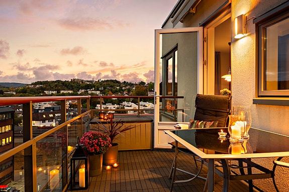11 kvm balkong, sørvest-vendt, med elektrisk markise