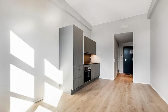 Leiligheten er kun for studenter. Nyrenovert 1-roms leilighet med høy standard. Leiligheten er en del av Campus G12 som byr på nye, fine og sikre studentboliger med fantastisk beliggenhet i Nydalen. Her er du omringet av grønne omgivelser med nær tilknytning til sentrum, med nærbutikk og restaurant på eiendommen
