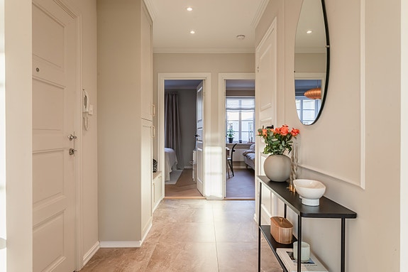 I fjerde etasje finner du en koselig leilighet som er nyoppusset og klar for nytt pust av liv. Hjemmet kan blant annet vise til en fantastisk stue med herdet tregulv i fiskeben, dekorlister på vegger og koselig vedovn. Kjøkken er moderne i fargen sand og med påkostede detaljer. Badet er både utvidet og pusset opp med artige valg og løsninger.