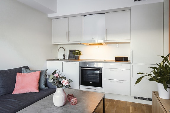 Fjernvarme, kabel-tv og internett er inkludert i husleien - i tillegg til vedlikehold og rengjøring av fellesarealer. Oppvarming inkludert gir relativt lave og forutsigbare kostnader for strøm.