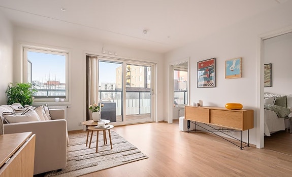 Dette er en lys og trivelig 2-roms i et moderne bygg fra 2018. Leiligheten holder en gjennomgående høy standard med smarte løsninger, god takhøyde og store vindusflater som slipper inn mye naturlig lys.