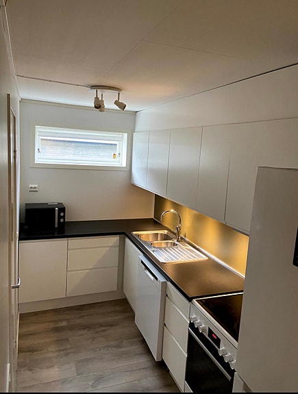 Flott sokkelleilighet 65kvm. Renovert, egen inngang, parkering, egen strømmåler, varme i gulv. Ledig fra midten av Mars.