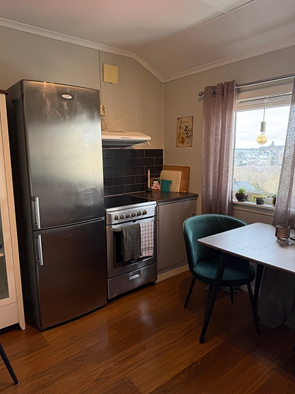 Med hvitevarer og oppvaskmaskin. Sentralt. Ca.100m til buss. Liten koselig uteplass. Rolig husområde. Kan leies ut møblert om ønskelig.Utsikt over Halden.