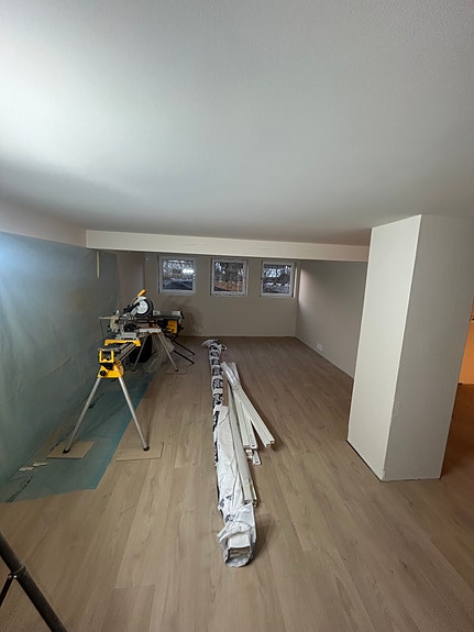 Boligen er per i dag i sluttfasen av renovering og vil være ferdig til mandag 1 April. Skapdører kjøkken og dører blir levert 15 mars, lister og montering av lys i tak av elektriker.