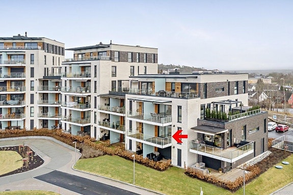 Leiligheten har en flott beliggenhet med kort avstand til de viktigste fasiliteter. Det er gangavstand til barne- og ungdomsskole, nærbutikk og helsetjenester. Det er ca. 5 km til Sarpsborg sentrum med alle byens fasiliteter og ca. 11 km til Fredrikstad sentrum. Det er god offentlig kommunikasjon til Sarpsborg sentrum, Fredrikstad og ekspressbusser til Oslo og utlandet. Leiligheten har BRA på 51,7 kvm og P-rom på 48 kvm med god takhøyde. Leiligheten er delvis møblert med integrerte hvitevarer, god standard, store vindusflater og solrik terrasse på 9,6 kvm. Kjellerbod på 5 kvm samt fast biloppstillingsplass i underjordisk garasjeanlegg med heis til alle etasjer. Det er balansert ventilasjon og vannbåren gulvvarme i alle rom – avregnes a-konto. Leiligheten leies ut for kr 12500 per måned. Leien er inkludert bredbandstilknyting og kabel-TV. Strøm kommer i tillegg. Depositumet, som må være på plass innen overtakelsen av boligen, er kr 36000.