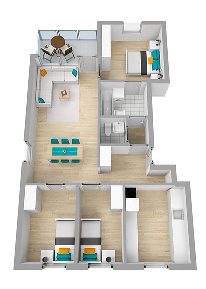 3 bedrooms: 1 master bedroom and 2 children’s bedrooms