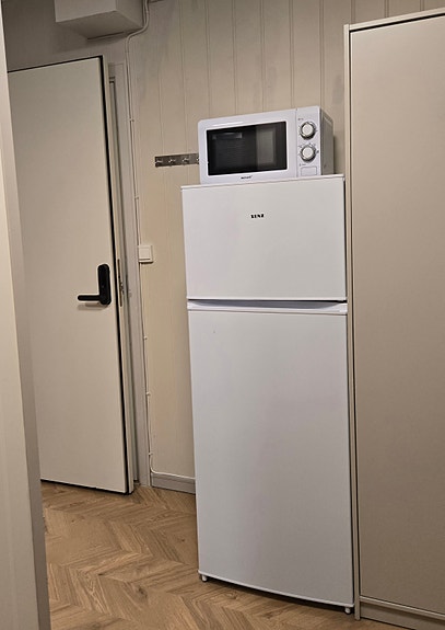 Liten hybel, 16 kvm, som har wc-rom, dusj, kjøkkenbenk m/induksjonsplate, mikrob.ovn, kjøl/frys kombiskap, garderobeskap, skrivbord, sovesofa, taklys og leselampe, stoler og nattbord. Balansert ventillasjon, egen inngang med kodelås. Nyrennovert med eksra lyd- og brannisolerte vegger