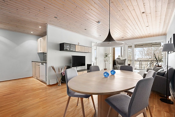 - Stor stue med plass for spisebord.