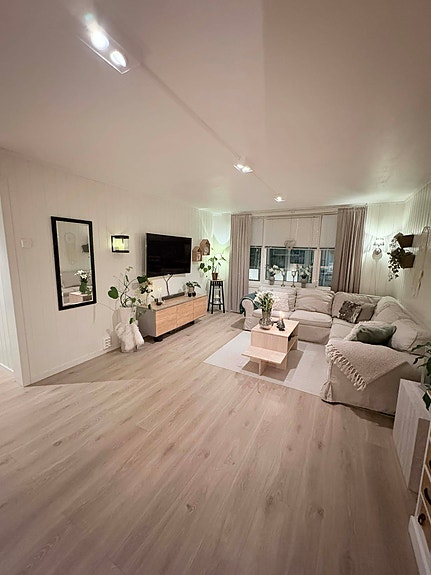 Stor stue med god plass til sofa- og TV-sone