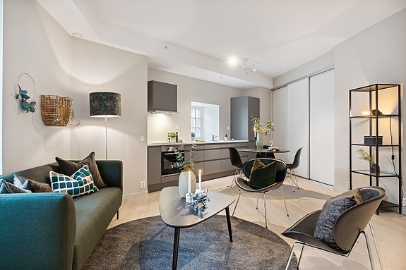 Leiligheten ligger i et historisk bygg som er totalrehabilitert til moderne leiligheter i 2023.