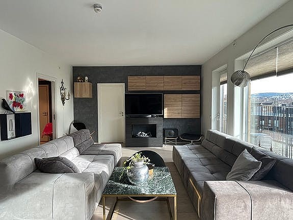 Boligen leies ut fullt møblert og har parkeringsplass i felles P-kjeller.