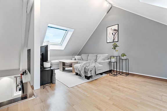 Leiligheten har en praktisk planløsning som strekker seg over to plan.