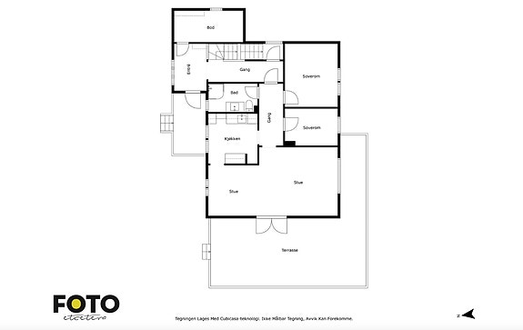 - Kjøkken som avbildet uten brune/hvitevarer men opplegg klart til dette.