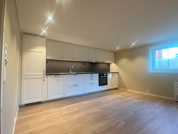 Romslig og meget pen nyoppusset kjellerleilighet på ca. 85 m² leies ut. Alt er nytt. Leiligheten passer best for rolige leietakere som ønsker et komfortabelt og stabilt boforhold. Ikke egnet for festing eller høy aktivitet.