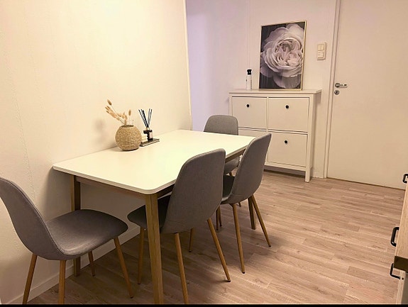 Gode bussforhold. Internett inkludert i husleien. Delvis møblert og hvitevarer inkludert. Fin ute område som kan benyttes. Varm gulv i hele leiligheten.