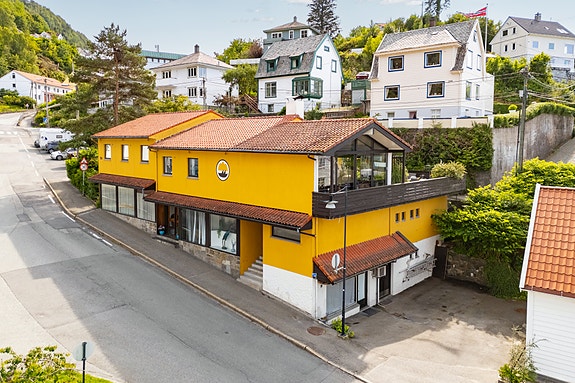 Bygget i sin helhet består av en større leilighet i samme etasje, i tillegg til næringslokaler under.