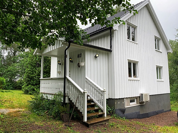 Fra spisestuen er det direkte utgang til koselig, overbygget veranda.