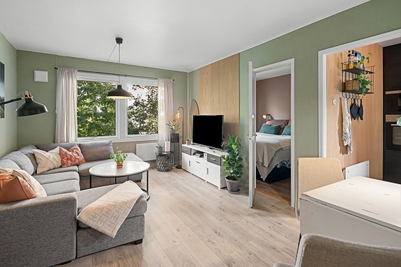 Lys og tiltalende 2-roms hjørneleilighet med meget god standard! Rolig og attraktivt boligområde. Parkeringsplass.
