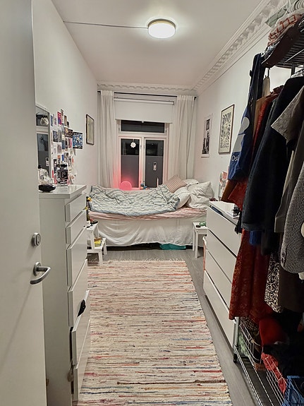 Rommet er ca. 10 m², lyst og ganske luftig med hjelp av takhøyden. Leiligheten har en fin størrelse og ligger i 1. etasje (greit med få trappetrinn). Vi har en grei stue/kjøkken-løsning med balkong, et kjøkken og to boder! Området er relativt rolig og koselig, med alt du trenger i nærheten. Det er også gode koblinger til kollektivtrafikken som er suuuupert!