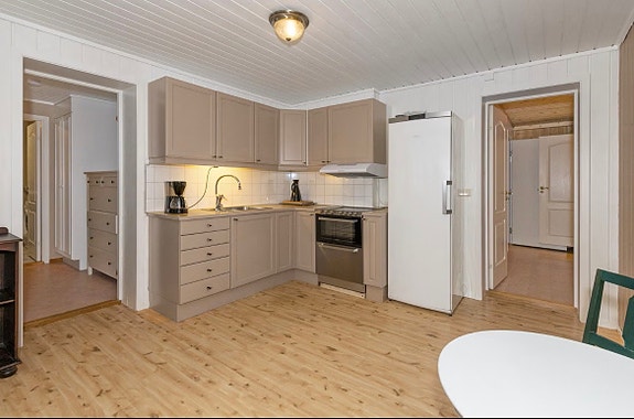Kjøkken med oppvaskmaskin, alt av de nye hvitevarene er med.