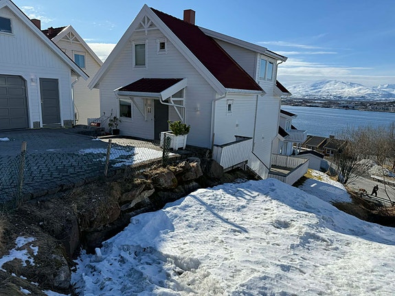Lys og moderne leilighet med badstue, egen veranda og tilgang til hage. Gode solforhold, vestvendt med kveldssol og utsikt mot Tromsø og Tromsøysundet. Rolig og barnevennlig område.