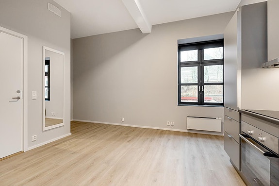 Umøblert. Kjøkkenhvitevarer medfølger.