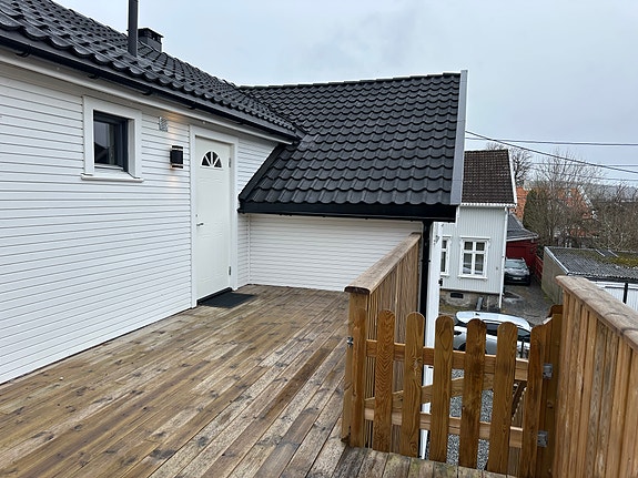 Entré med egen inngagng og terassekrok med plass til litt utemøbler.