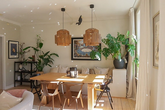 Leiligheten har en stor og deilig stue, arbeidsplass i stue, stort spisebord og et nytt kjøkken.
