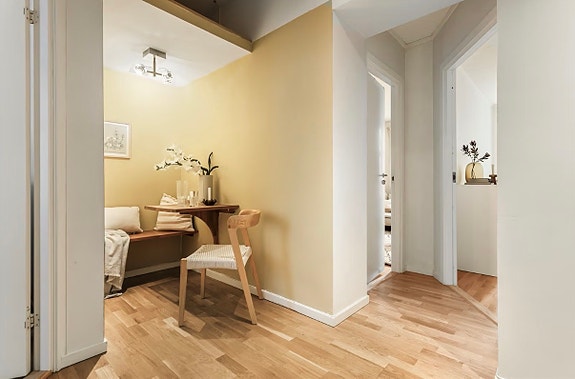 Leiligheten ligger sentralt til, samtidig som den er skjermet beliggende i enden av en blindvei. Den består av tre soverom, separat kjøkken og bad. Ett av rommene kan også brukes som oppholdsrom eller stue dersom det er ønskelig.